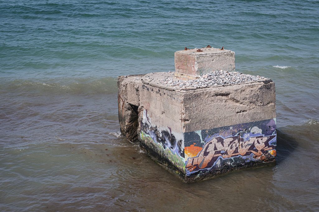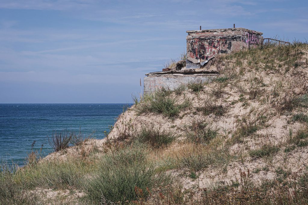 Auf Höhe von Niehagen in der Gemeinde Ahrenshoop haben wir an der Steilküste Halt gemacht. Mehr als 70 Meter Land hat sich hier die Ostsee in den vergangenen 100 Jahren schon zurückgeholt. Dazu zählen auch die Bunkeranlagen aus Zeiten der DDR, die immer weiter freigelegt werden und ins Wasser stürzen. Vermutlich dauert es nur noch wenige Jahrzehnte bis die letzten Teile der Bunker von Ahrenshoop auf natürlichem Weg freigelegt sind.