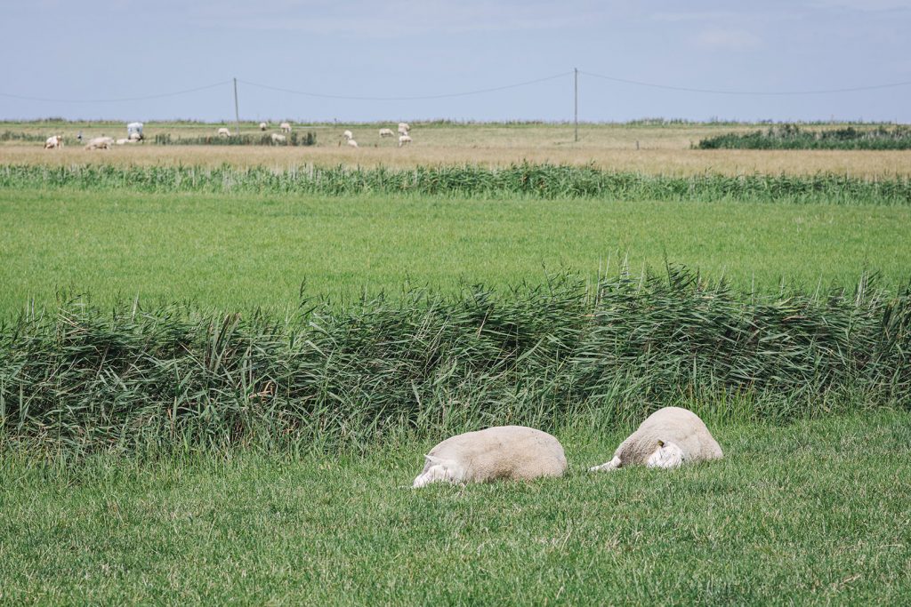 Gerade noch an der Ostsee über Felsen geklettert und schon sind wir an der Nordsee gelandet. Die Landesgrenze zwischen Deutschland und Dänemark ist halt nur 67 Kilometer lang. Der Rickelsbüller Koog ist der nördlichste Koog an der Nordwestküste Schleswig-Holsteins. Hier am Grenzdamm befindet sich die nördlichste Stelle des deutschen Festlands. Ein Denkmal erinnert in zwei Sprachen an den gemeinsamen Deichbau von 1979 bis 1982. Haben hier auch ein paar Fotografen in Tarnanzügen im Gras liegen sehen, die gerade damit beschäftigt waren, ein paar Vogelarten zu fotografieren. Hier in der Gegend ist es so gemütlich und ruhig, dass selbst Schafe am helllichten Tag auf der Wiese rumgammeln und schlafen.